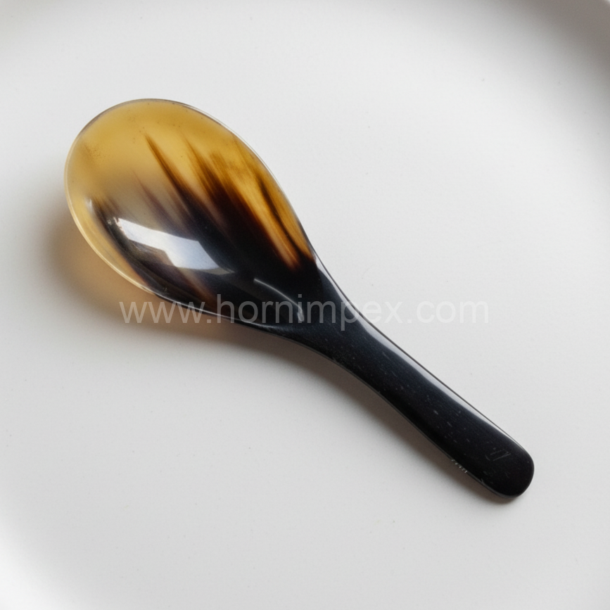 Expertly handcrafted from ethically sourced buffalo horn, this natural horn spoon from HornImpex exemplifies traditional Indian craftsmanship. Polished to a smooth finish and designed for durability, it is ideal for eco-conscious kitchens and export markets. Lightweight yet sturdy, each spoon is a unique piece – perfect for wholesale, custom, or private label orders.