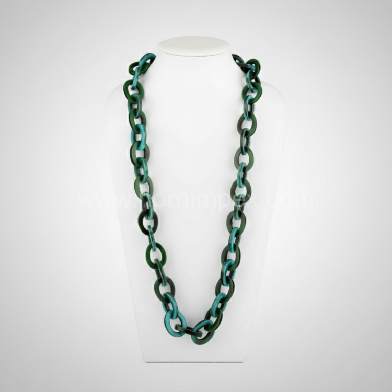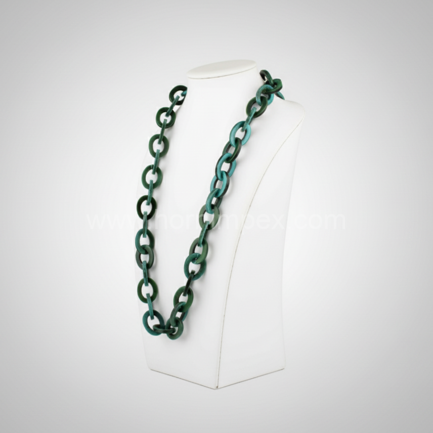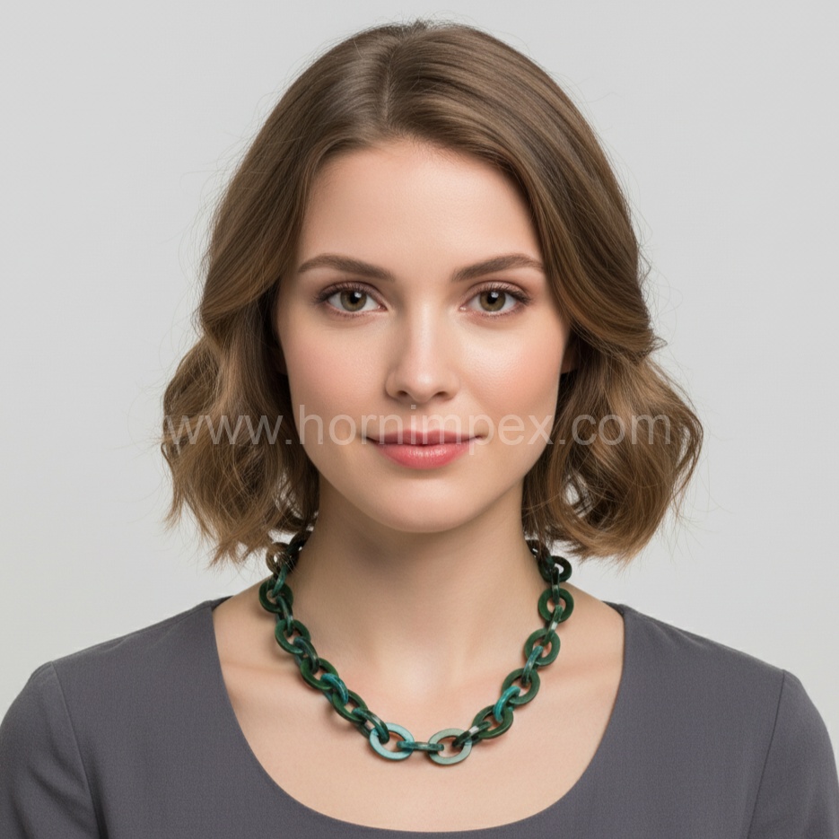 Designed for global wholesale and export, HornImpex ensures compliance with international quality standards. Our ability to fulfill bulk orders with customizable options makes this product ideal for importers and distributors in the USA, Europe, Middle East, and beyond. The green resin link chain necklace represents a blend of aesthetic appeal and export-ready reliability.