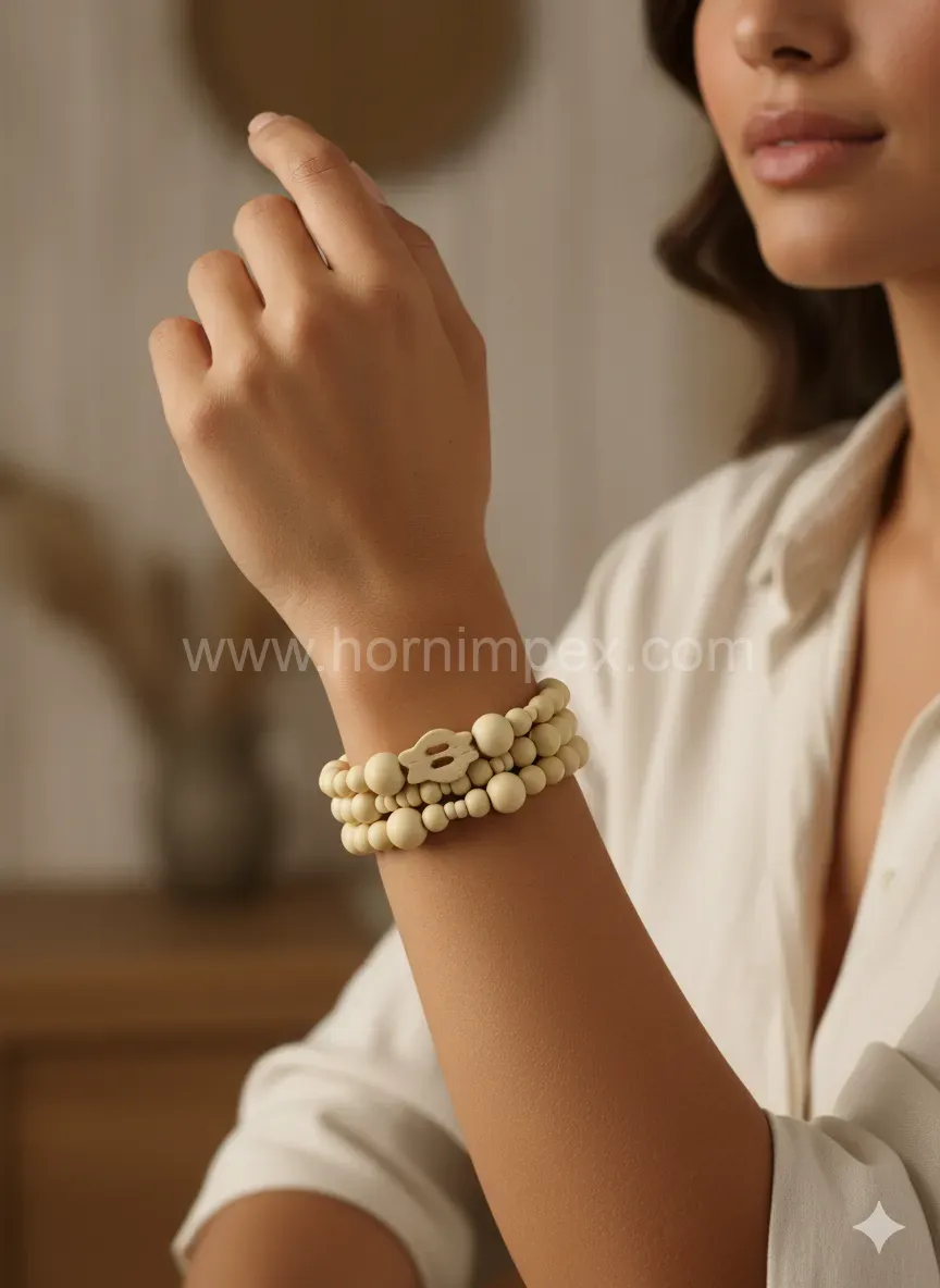 Elevate your accessory collection with this exquisite Multi-Strand Bone Bead Bracelet, expertly handcrafted by HornImpex, a leading manufacturer and exporter of horn and bone products from Sambhal.