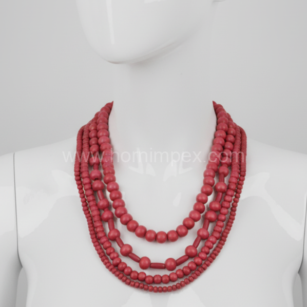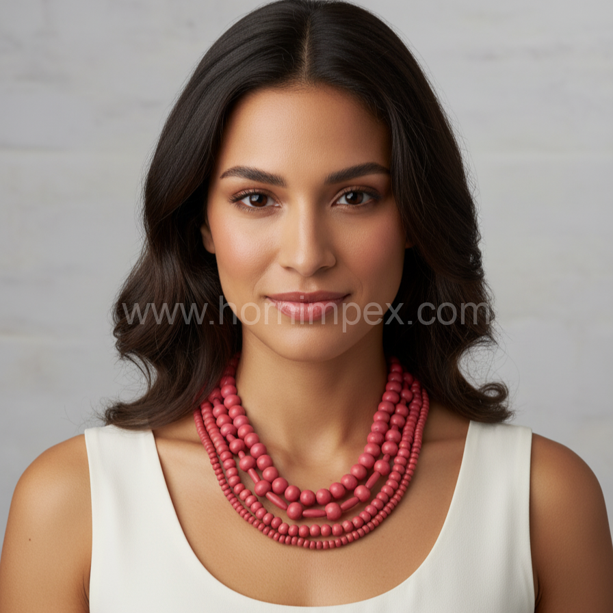 Contact HornImpex for bulk or custom export orders to enrich your product line with this exquisite Pink Wooden Bead Multi-Strand Statement Necklace.